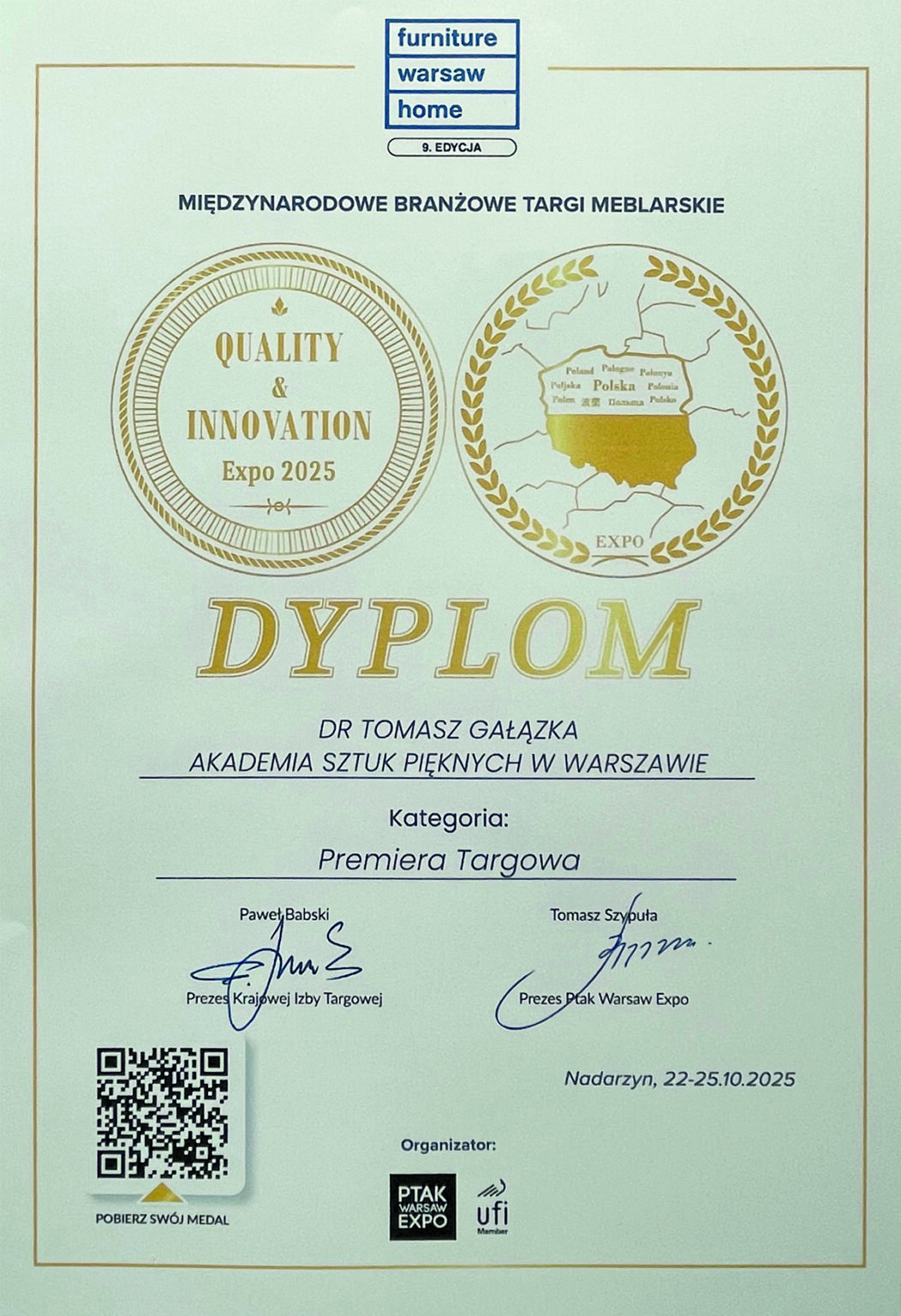 Medal „Jakość i Innowacja Expo 2025” dla Tomasza Gałązki